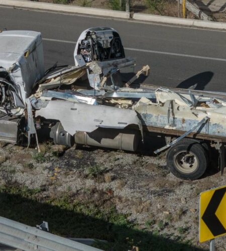 El incidente ocurrió poco antes de las 7:00 a.m., cuando la unidad intentaba incorporarse a la vía de cuota y, por el peso de la carga, perdió estabilidad al tomar una curva pronunciada, lo que provocó su volcadura.
