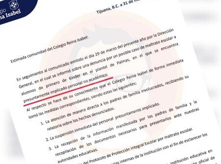 TIJUANA.- Un empleado del Colegio Reina Isabel fue suspendido tras una denuncia por presuntas agresiones contra alumnos de primero de kínder en el plantel Palmas, informó la institución.