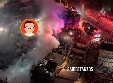 TIJUANA.- Un incendio consumió dos viviendas de madera durante la madrugada en la colonia Camino Verde, donde una mujer resultó intoxicada por humo.