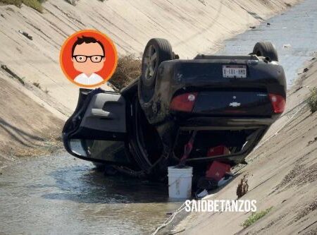Tras el golpe, el automóvil salió del camino y cayó a la canalización, donde quedó volcado con las llantas hacia arriba.